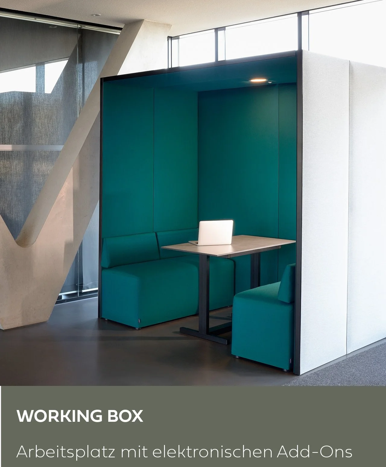 Mit kyuno können herkömmliche Büros in eben solch einen Ort verwandelt werden: von offenen Meeting Boxen bis hin zu völlig neuen Raumstrukturen, die so wandelbar sind, dass sie der agilen Arbeitswelt standhalten. Elektronische Add-Ons sorgen für optimale Arbeitsbedingungen und dank der Individualisierung wird die Innenausstattung zu einem Kommunikator der jeweiligen Unternehmensidentität.